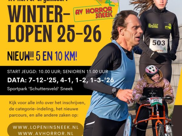 Informatie voor de Winterlopen 2025/2026 is te vinden op: https://www.avhorror.nl/lopeninsneek/eerste-winterloop/ Inschrijven kan d.m.v. de volgende link: https://inschrijven.nl/form/2025120723509-nl?utm_source=inschrijven.nl